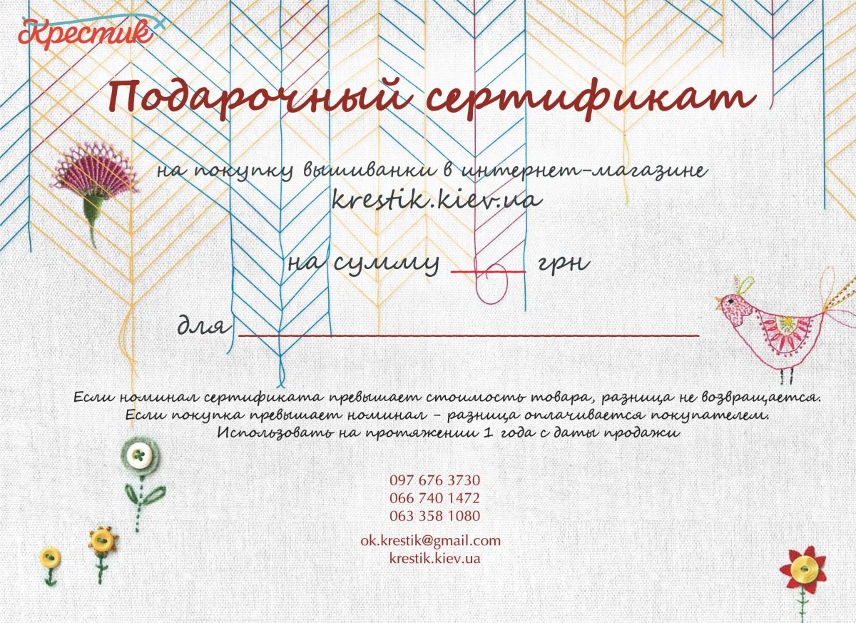ПОДАРИ ВЫШИВАНКУ НА УДАЧУ! ПОДАРОЧНЫЕ СЕРТИФИКАТЫ ОТ ИНТЕРНЕТ-МАГАЗИНА «КРЕСТИК»
