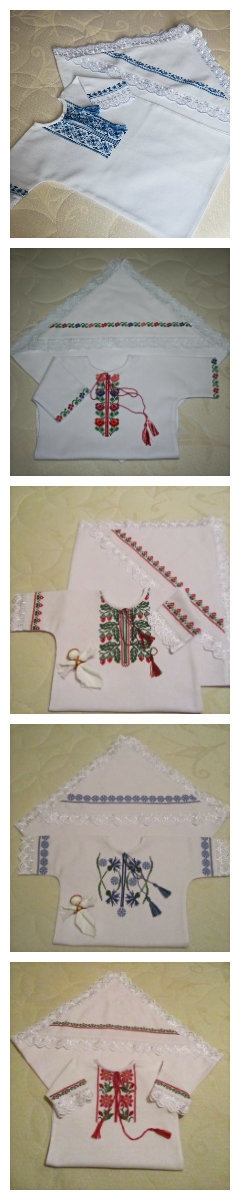Конечно же у нас вы сможете выбрать самый красивый обшитый рюшами комплект и купить крестильный набор в Киеве в интернет-магазине вышиванок «Крестик». Наши мастерицы вручную вышивают все изделия крестом или счетной гладью на домотканом полотне или натуральном выбеленном льне (благодаря чему одежда будет комфортной, мягкой и удобной для малыша). Украшаются наборы кружевом.