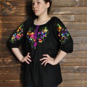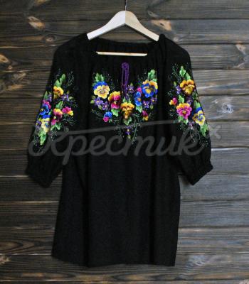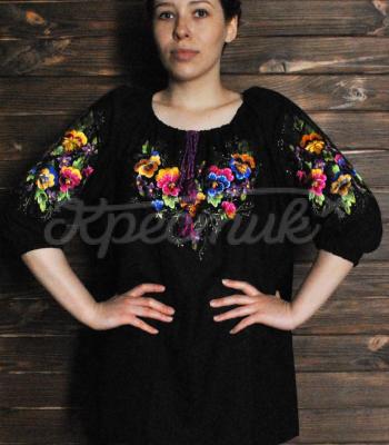 Женская блузка пошита из качественного домотканного полотна и декорирована в уникальной технике художественной глади.